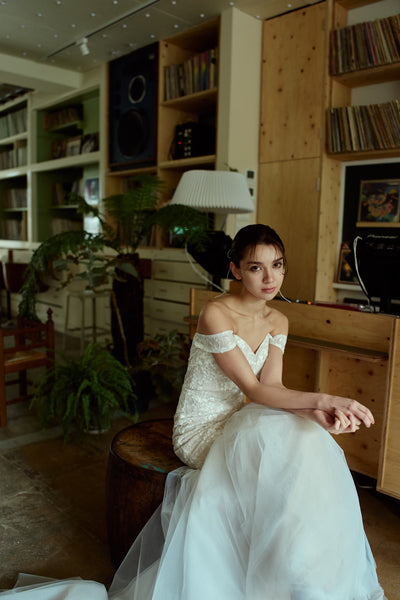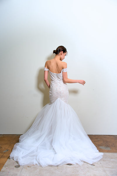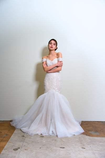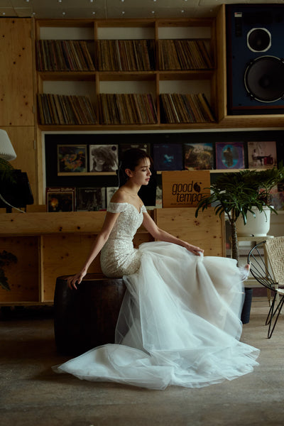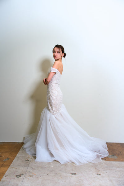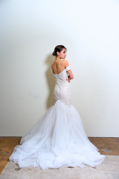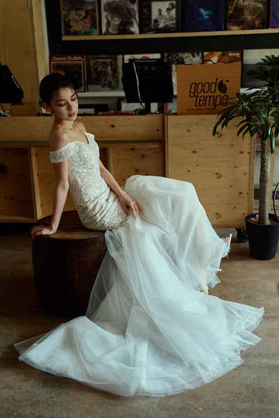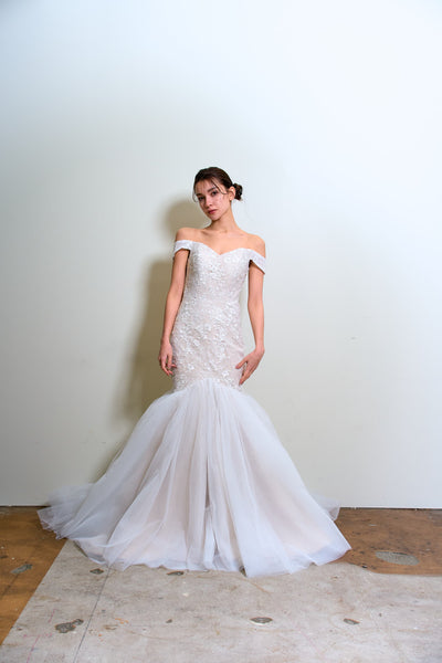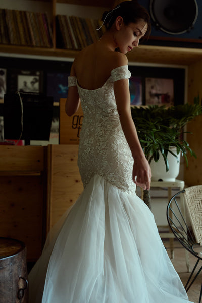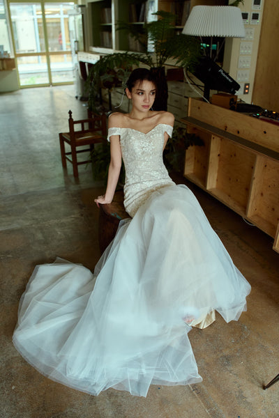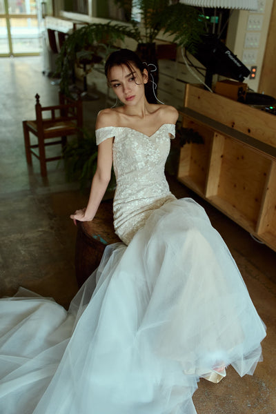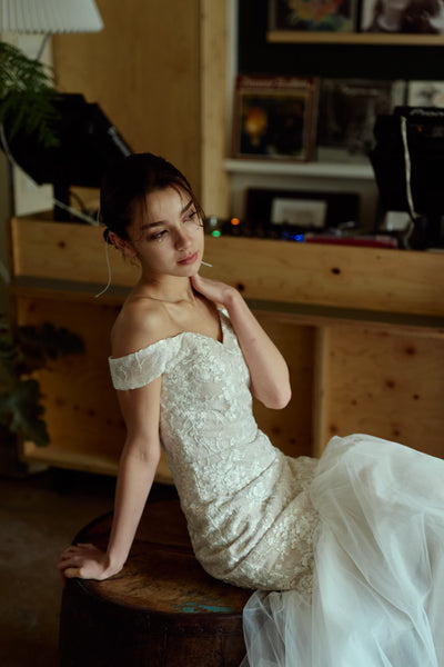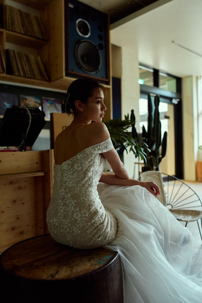オフショルダー レース マーメイドドレス(W355)