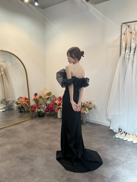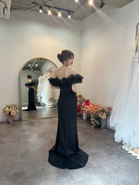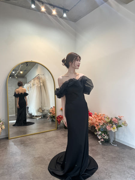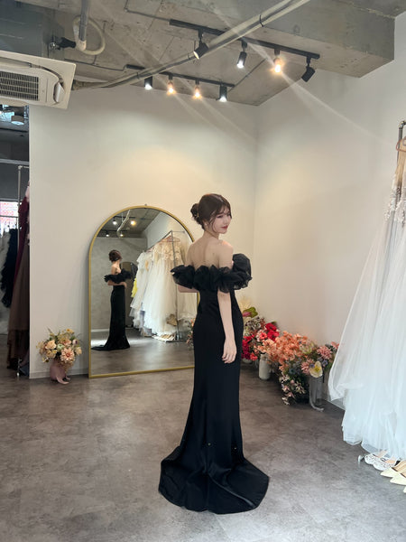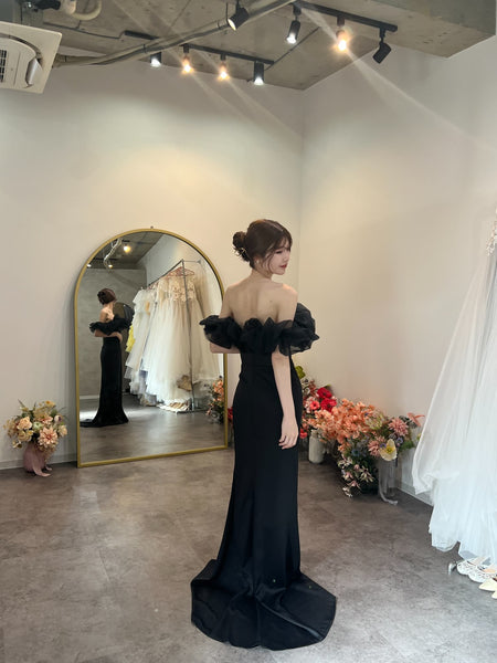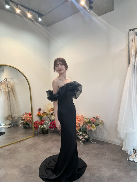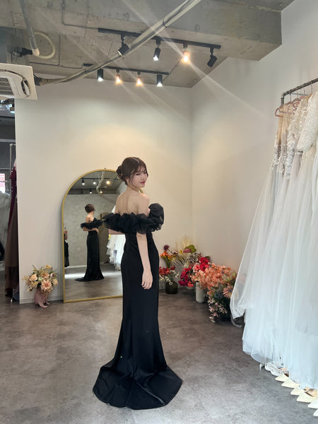 チュールショルダー ソフトマーメイドドレス ブラック(W341BK)