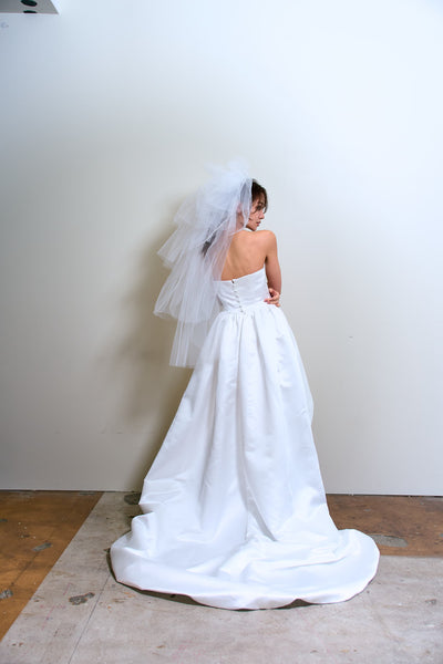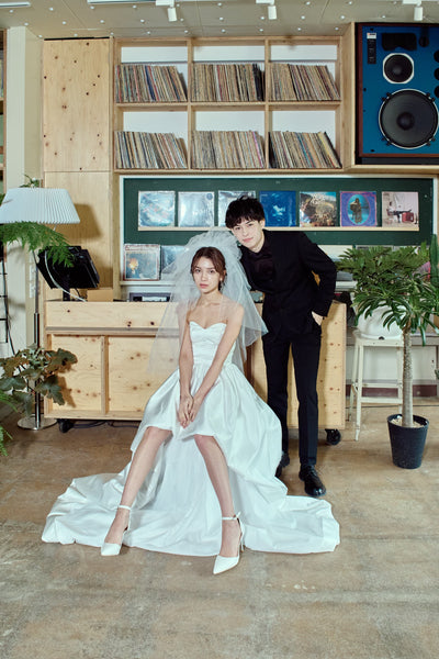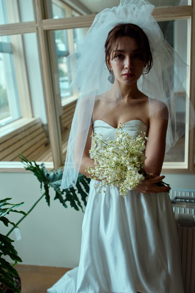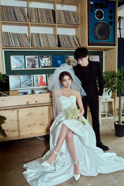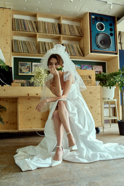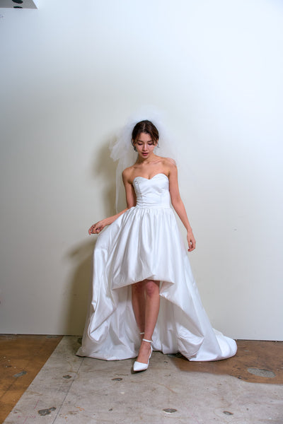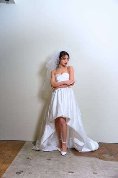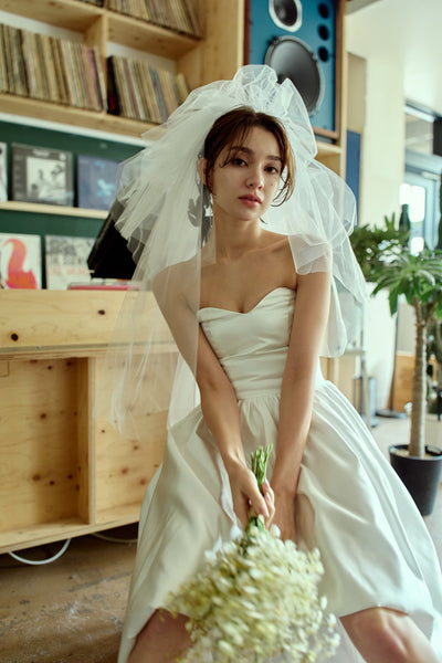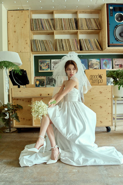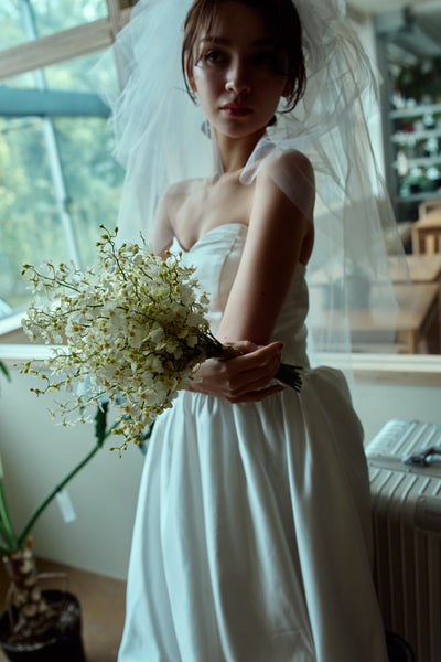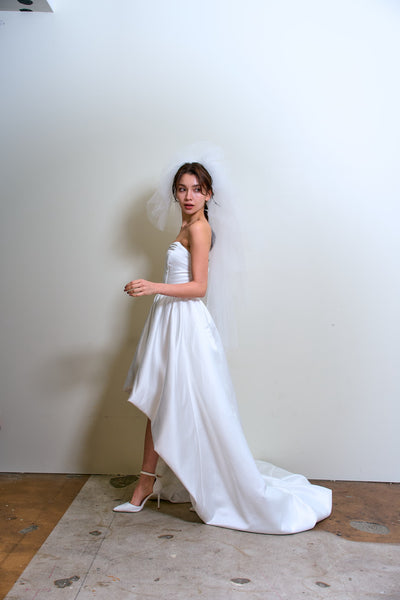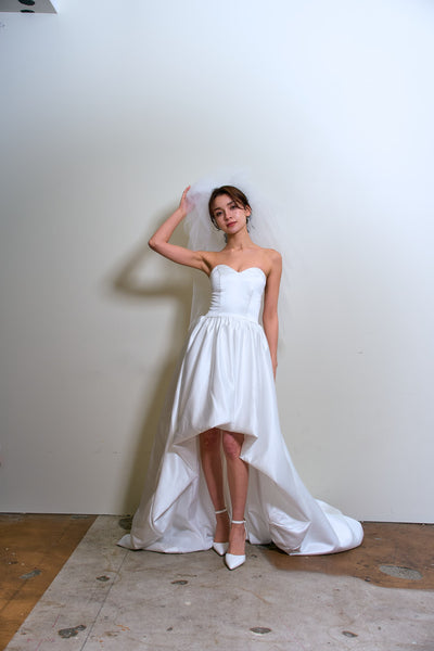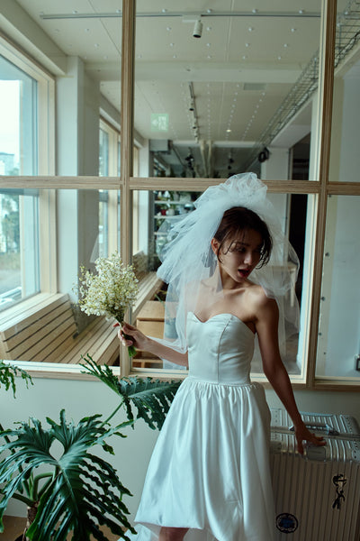 トレーンが長めなので、ミニドレスに抵抗がある方も挑戦しやすいデザインです。