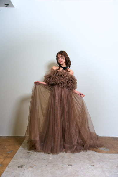 - ボリュームフリルショルダー Aラインドレス(W356)