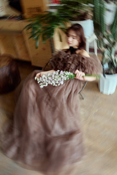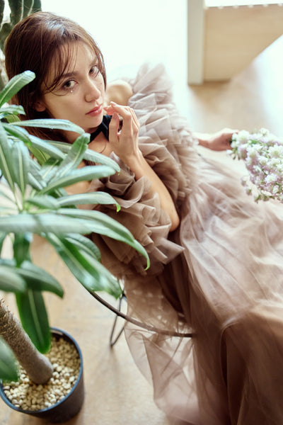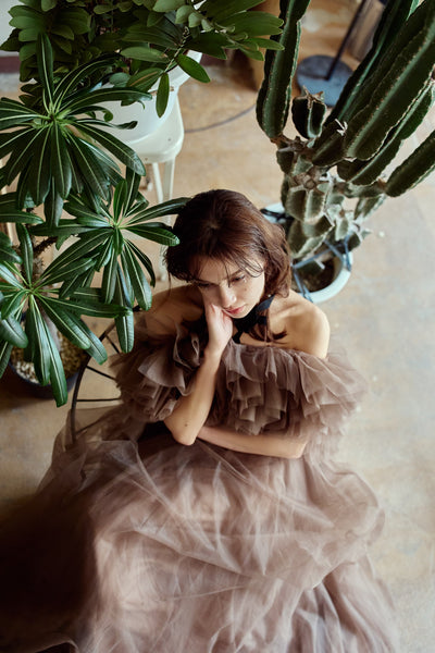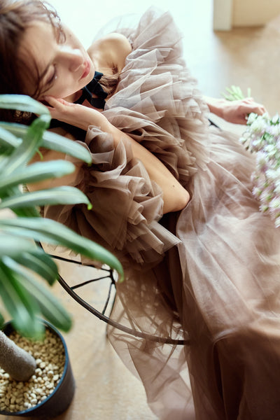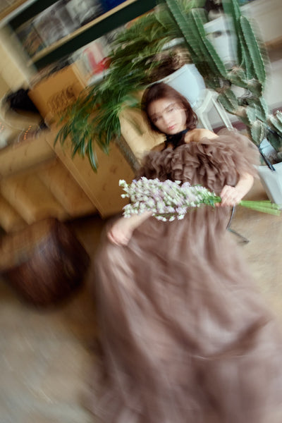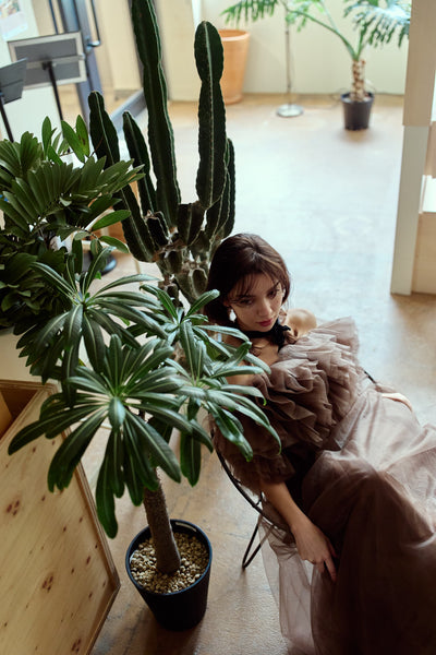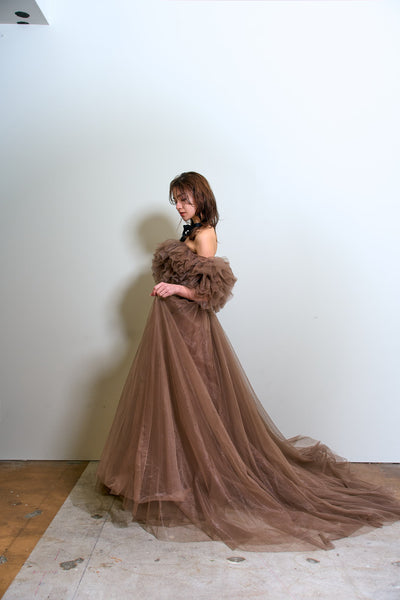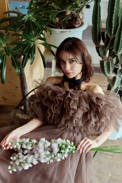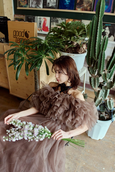 落ち着いたブラウンのお色味なので、フリルでも甘すぎず