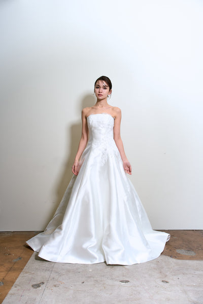 - ミカド風サテン 刺繍 Aラインドレス(W353)