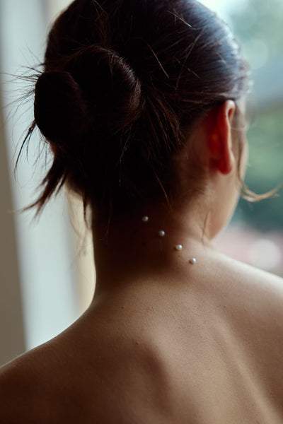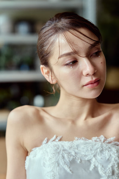 胸元からウエストにかけてビーズ刺繡を施し、華やかさをプラスしました。